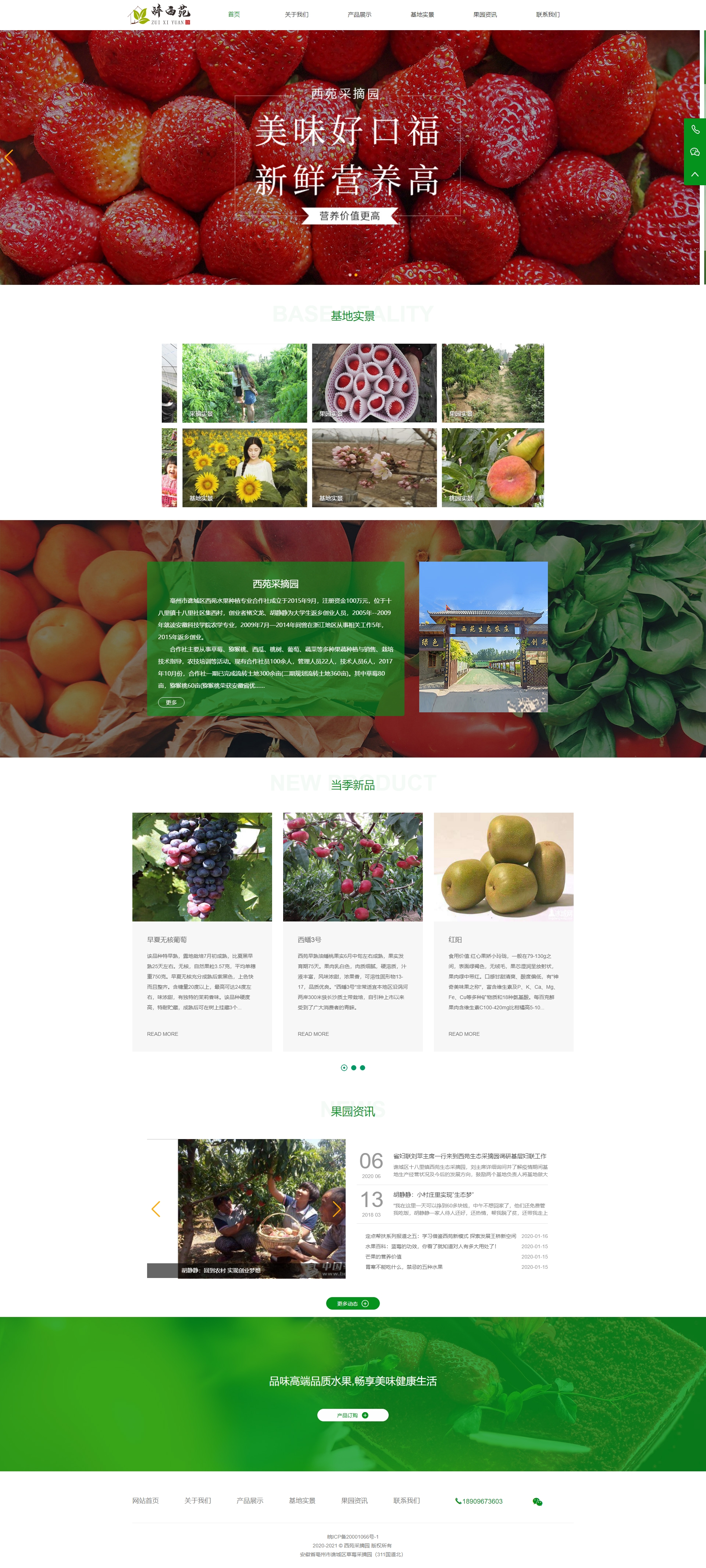 合作社主要從事草莓、獼猴桃、西瓜、桃樹(shù)、葡萄、蔬菜等多種果蔬種植與銷(xiāo)售、栽培技術(shù)指導(dǎo),農(nóng)技培訓(xùn)等活動(dòng)?,F(xiàn)有合作社員100余人,管理人員22人,技術(shù)人員6人,2017年10月份,合作社一期已完成流轉(zhuǎn)土地300余畝(二期規(guī)劃流轉(zhuǎn)土地360畝)。其中草莓80畝,獼猴桃60畝(獼猴桃榮獲安徽省優(yōu)質(zhì)獼猴桃大獎(jiǎng)賽金獎(jiǎng))梨樹(shù)45畝,新品種桃30畝,葡萄20畝,并引進(jìn)車(chē)?yán)遄?、蘋(píng)果、藍(lán)莓等多種果樹(shù)(草莓、獼猴桃等五個(gè)產(chǎn)品已通過(guò)國(guó)家A級(jí)綠色認(rèn)證)年產(chǎn)水果超700噸,銷(xiāo)售收入達(dá)400多萬(wàn);
